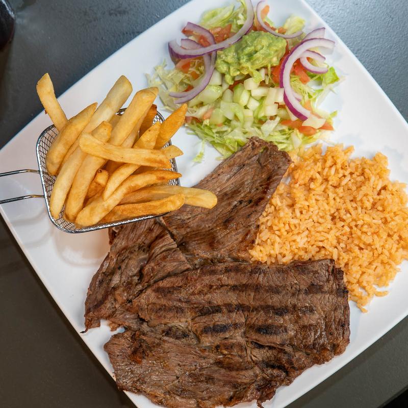 12" Flour tortilla stuffed with cheese, beans, and your choice of meat, and a side of French fries.